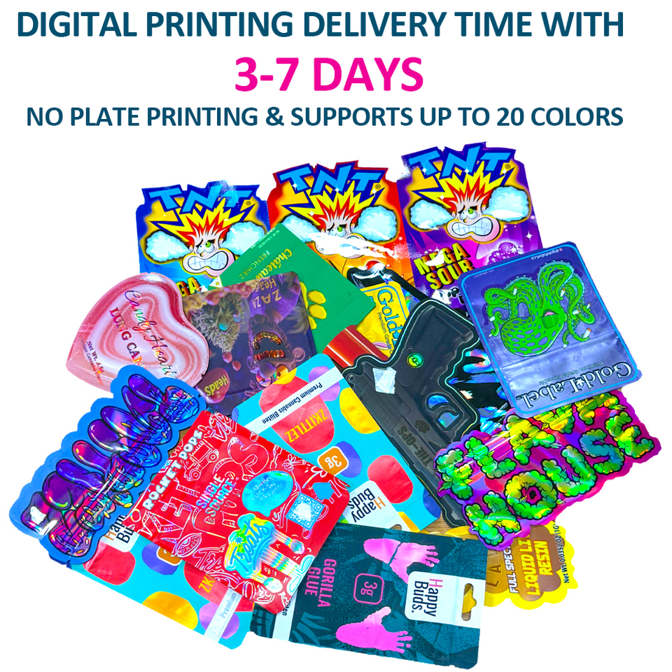 กระเป๋าแบบตั้งป้องกันกลิ่นพิมพ์ดิจิตอล3.5 Mylar สำหรับเหนียวกินได้