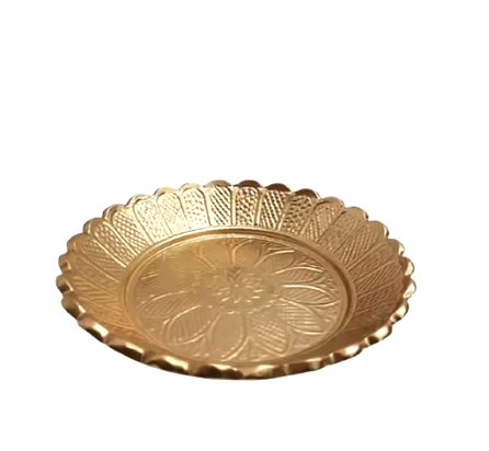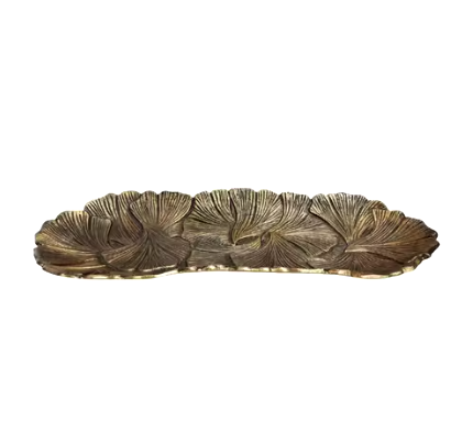 จานโลหะเคลือบทองเหลืองรูปใบไม้แบบใช้แล้วทิ้งเครื่องใช้บนโต๊ะอาหารสุดหรูสำหรับงานปาร์ตี้จานทำมือ