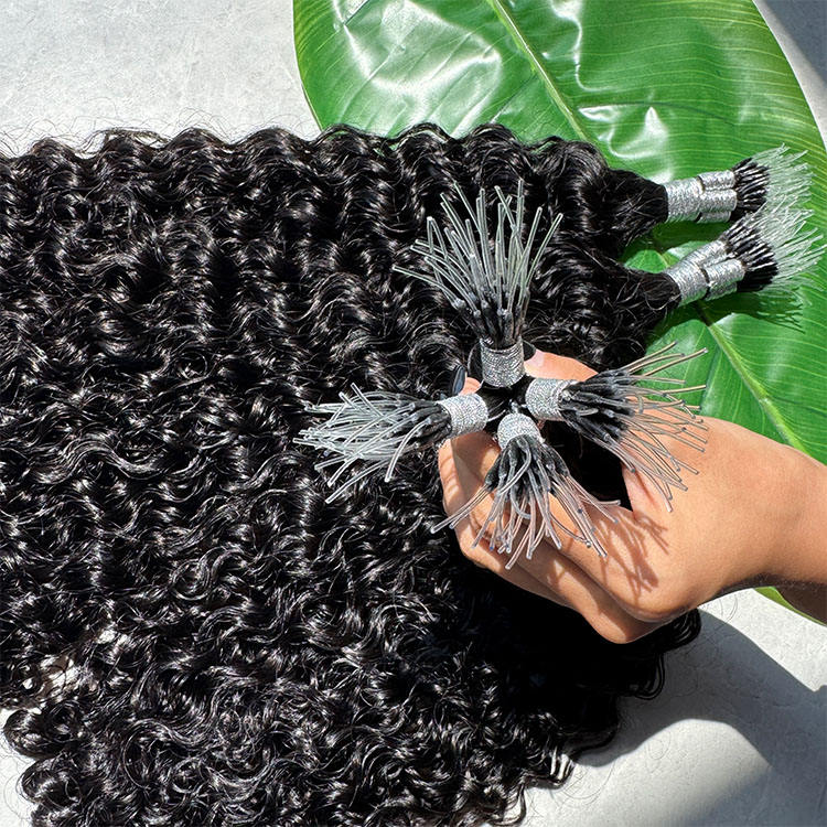 ที่ต่อผมพลาสติกนาโนปลายผมสีดำตรงปลายเล็บมีความยืดหยุ่น