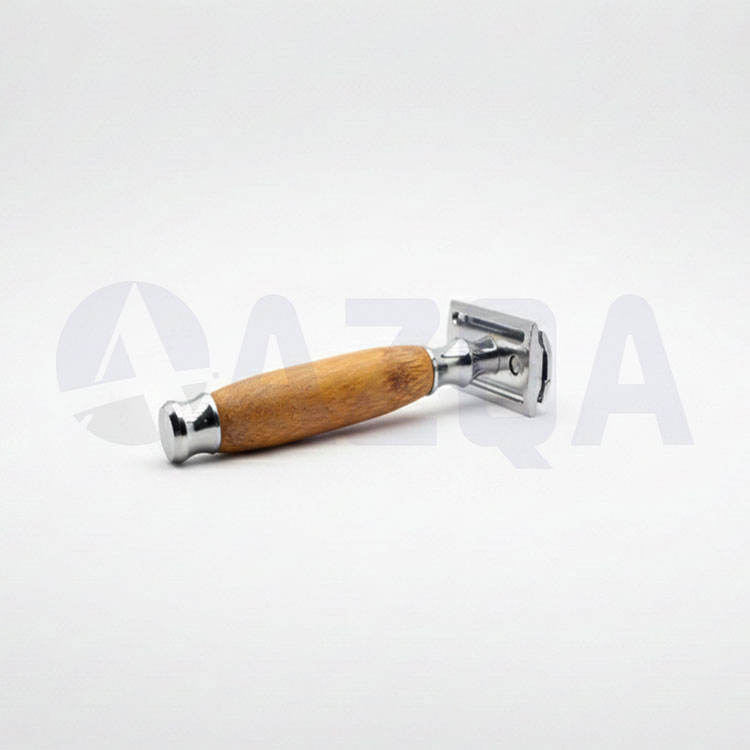 มีดโกนขอบคู่เพื่อความปลอดภัยที่มีด้ามจับไม้สำหรับการโกนแบบแมนนวลเรียบเหมาะสำหรับผู้ชายร้านตัดผมและร้านตัดผม