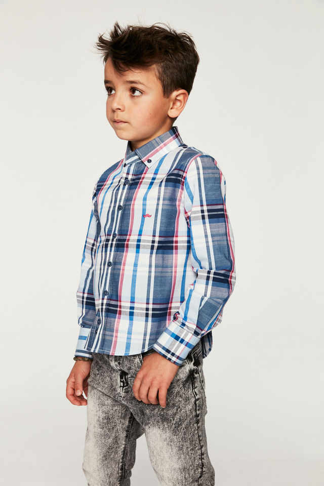 เสื้อเด็กแขนยาวคอปกชุดเดรสมีกระดุมใส่สบายมีสไตล์