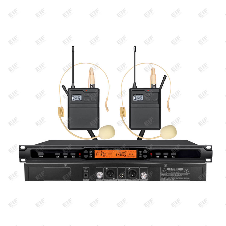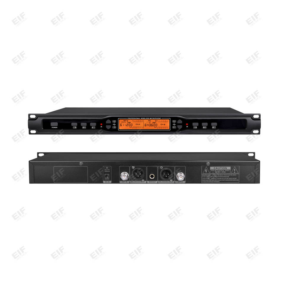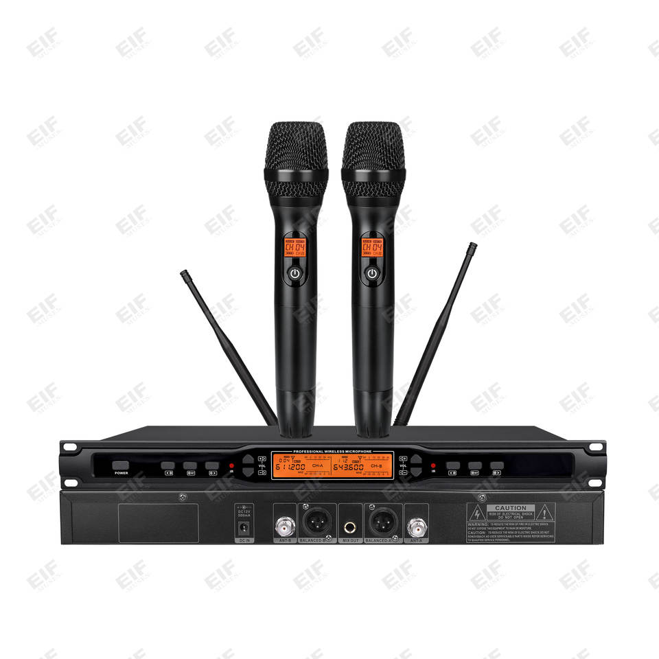 ไมโครโฟนไร้สาย UHF แบบไดนามิกคอนเดนเซอร์ EIF -1100 ระดับมืออาชีพ ช่องสัญญาณคู่ ตัวเครื่องโลหะ XLR พกพาสะดวก น้ำหนักเบา เหมาะสำหรับคาราโอเกะ