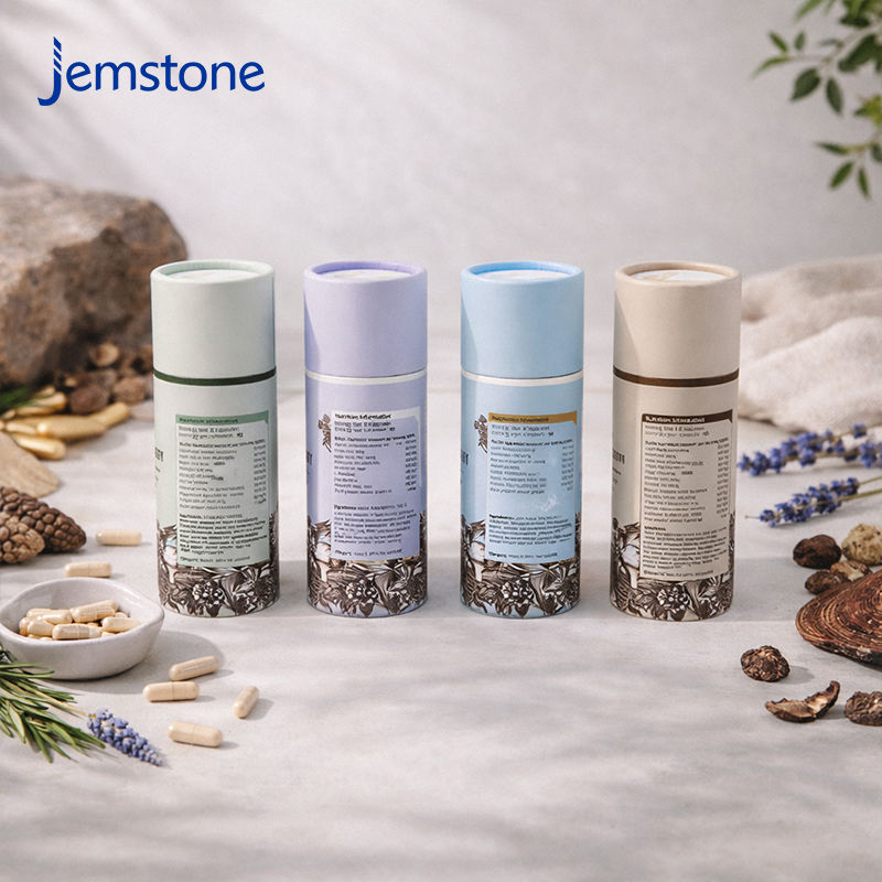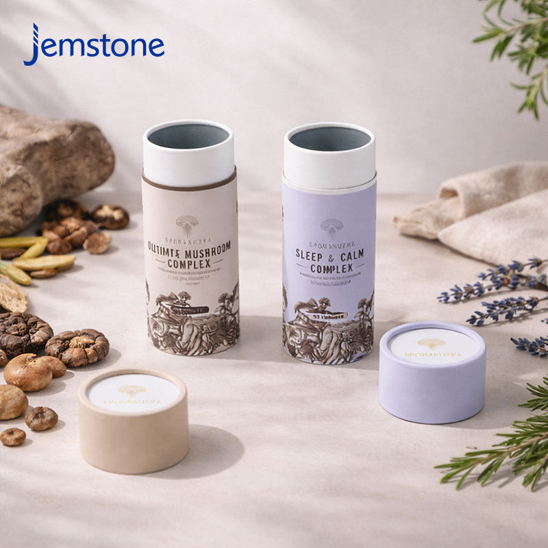 กล่องบรรจุภัณฑ์กระดาษทรงกระบอกสำหรับอาหารเสริมโปรตีนแบบกัมมี่ เป็นมิตรกับสิ่งแวดล้อม ขายดี รับผลิตตามแบบ