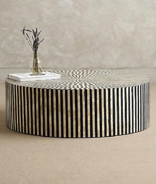 โต๊ะกาแฟโมเดิร์นงานแฮนด์เมดฝังเปลือกหอยคุณภาพสูงรักษ์โลกขายดี ฐานโลหะสำหรับพื้นที่นั่งเล่น ส่งตรงจากอินเดีย