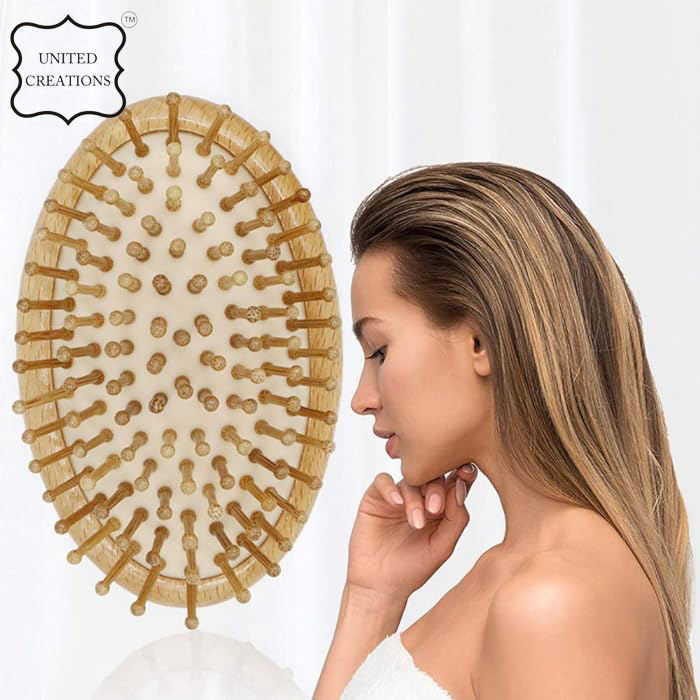 แปรงหวีผมไม้ไผ่ธรรมชาติเป็นมิตรกับสิ่งแวดล้อมแปรงหวีผมด้ามสบาย