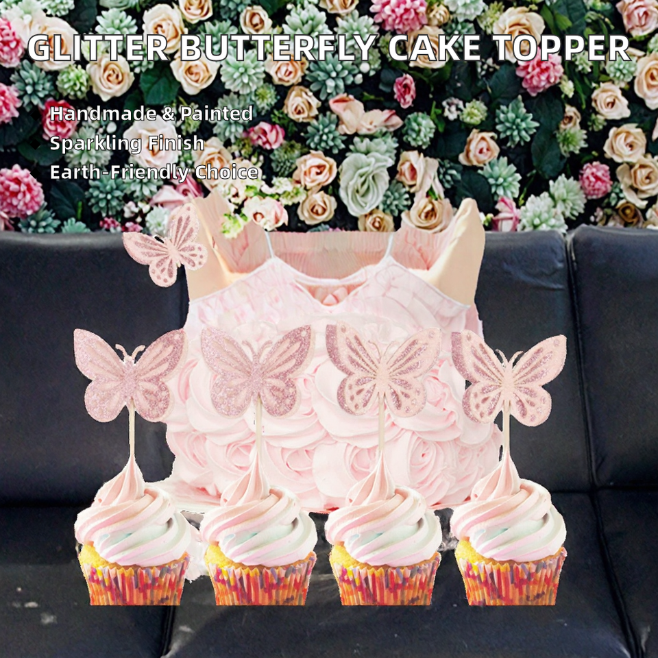 อุปกรณ์ตกแต่งเค้กกระดาษรักษ์โลกขายดี ประดับตกแต่งเค้กผีเสื้อกลิตเตอร์แฮนด์เมดเพ้นท์ลาย สำหรับต้อนรับเปิดเทอม