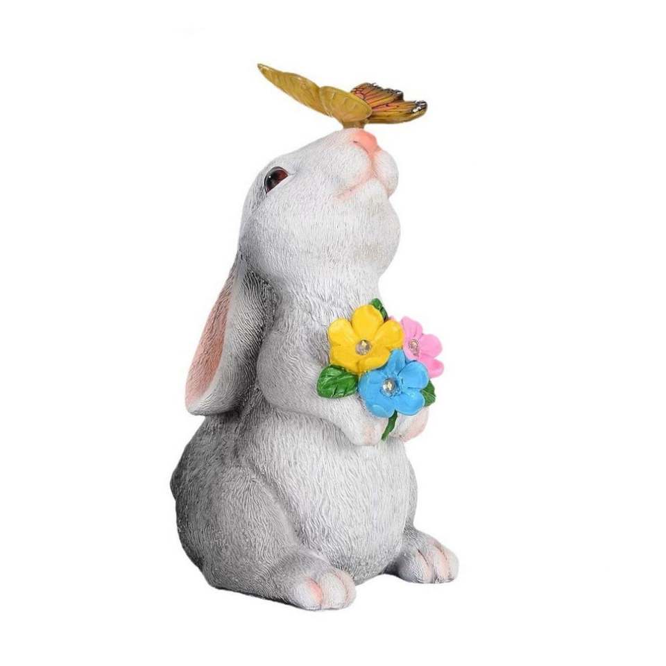ของตกแต่งสวนรูปกระต่ายเรซิ่นพร้อมไฟ LED พลังงานแสงอาทิตย์ รักษ์โลก ขายดี ประดับด้วยผีเสื้อและดอกไม้ สำหรับตกแต่งภายนอก