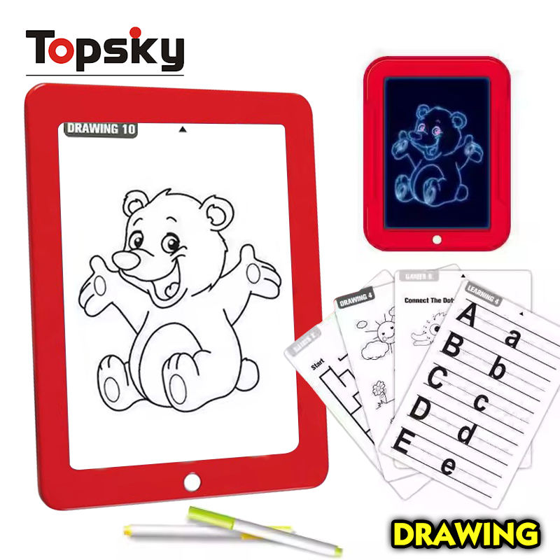 แผ่นวาดรูปเรืองแสงเพื่อการศึกษาแผ่นกระดานเขียน LED กระดานพลาสติก3D ศิลปะสร้างสรรค์ของเล่นสำหรับเด็ก