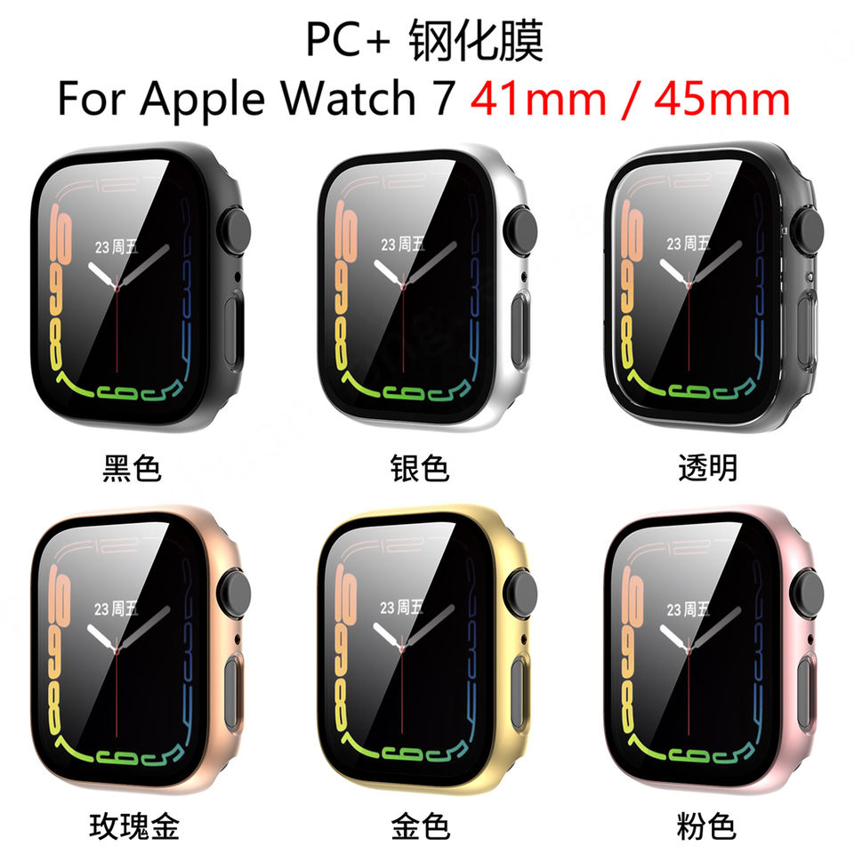 เคสใส่นาฬิกากระจกนิรภัย PC ชุบโลหะด้วยไฟฟ้าสำหรับ Apple iWatch 7 41มม. 45มม.