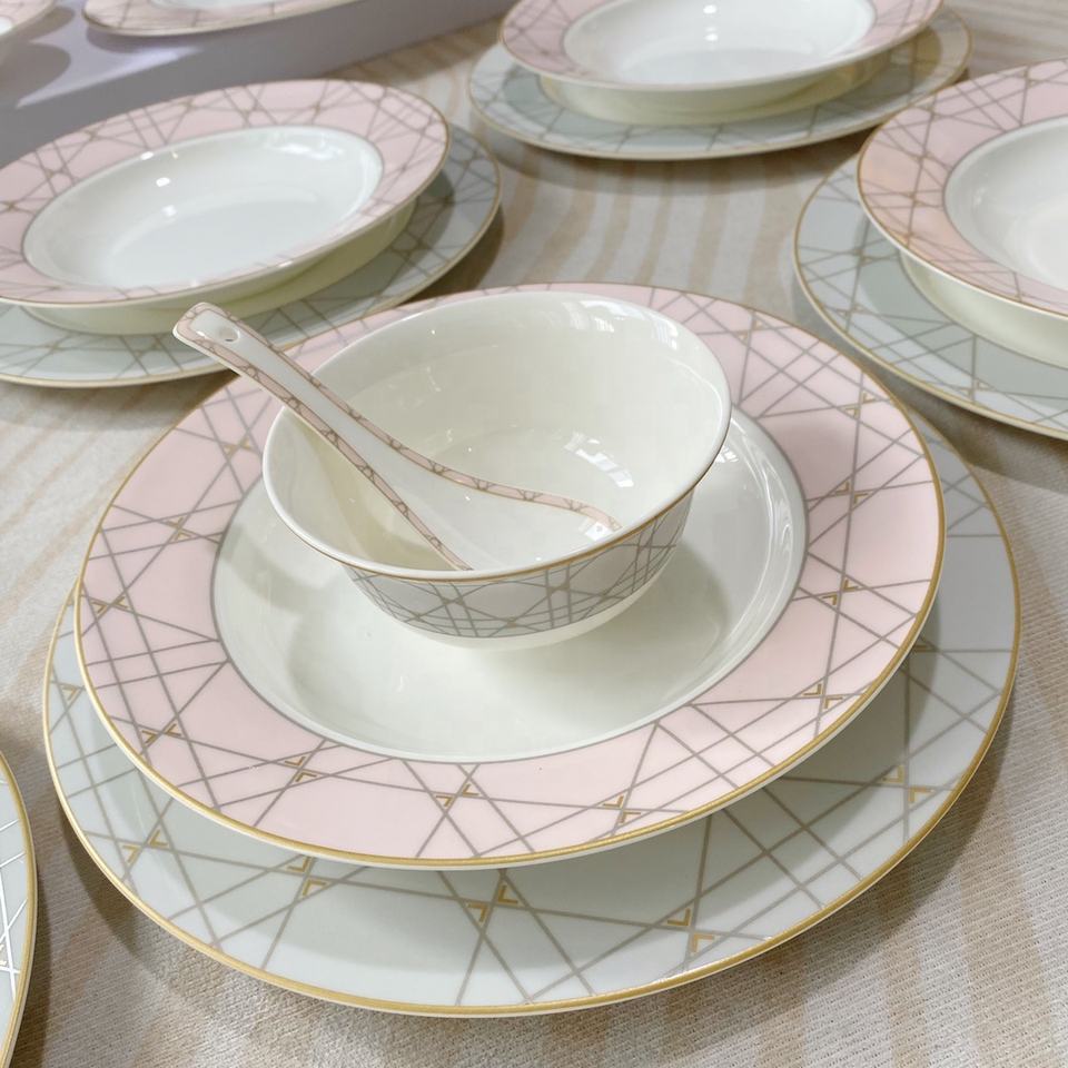 ชุดอาหารค่ำหรูหราสไตล์ยุโรป 41 ชิ้น ทำจากกระเบื้องเคลือบเนื้อกระดูก สีชมพู พร้อมจานของหวาน ขายดี