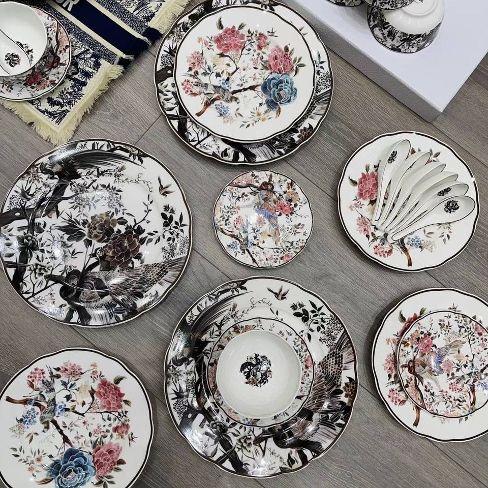 ชุดอาหารเย็นสุดหรูสไตล์ยุโรปจานกระเบื้องเคลือบจานโบนไชน่า41ชิ้น
