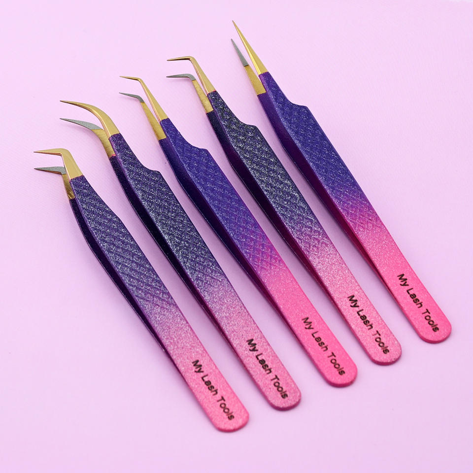 แหนบต่อขนตา45องศาที่คีบต่อขนตาปลายไฟเบอร์ไม่ลื่นแบบบางขนตาสแตนเลส