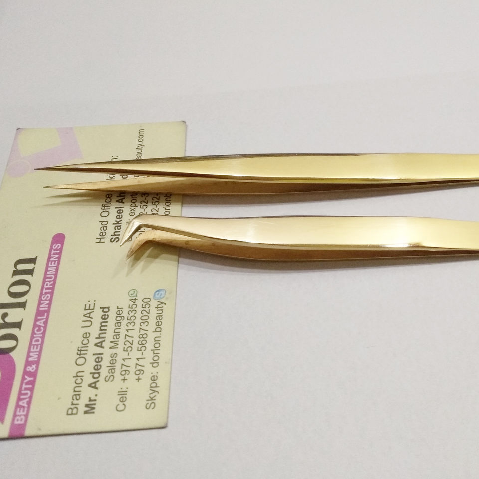 แหนบต่อขนตา Dorlon DB-ELT-9999 สแตนเลสชุบทอง ขายดี พร้อมแพ็คเกจจิ้งโลโก้สั่งทำพิเศษสำหรับขนตา