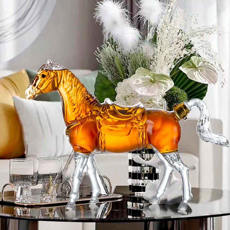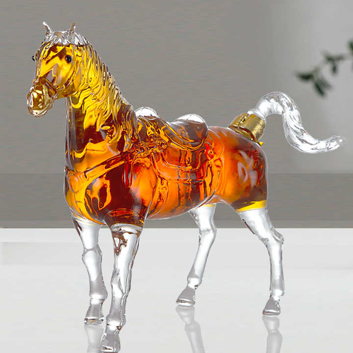 ขวดแก้วไวน์แดงทรงม้าตามสั่งขวดเหล้าวิสกี้ทำจากแก้วเหล้าวิสกี้