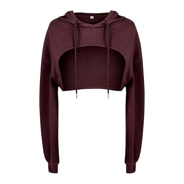 เสื้อครอปแขนยาวมีฮู้ดสไตล์แฟชั่นใหม่สำหรับผู้หญิงเสื้อผ้าลำลองขนาดพลัสไซส์ระบายอากาศ