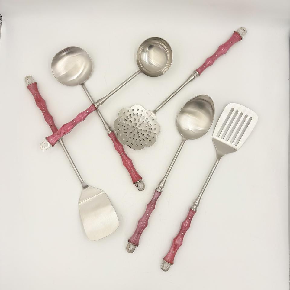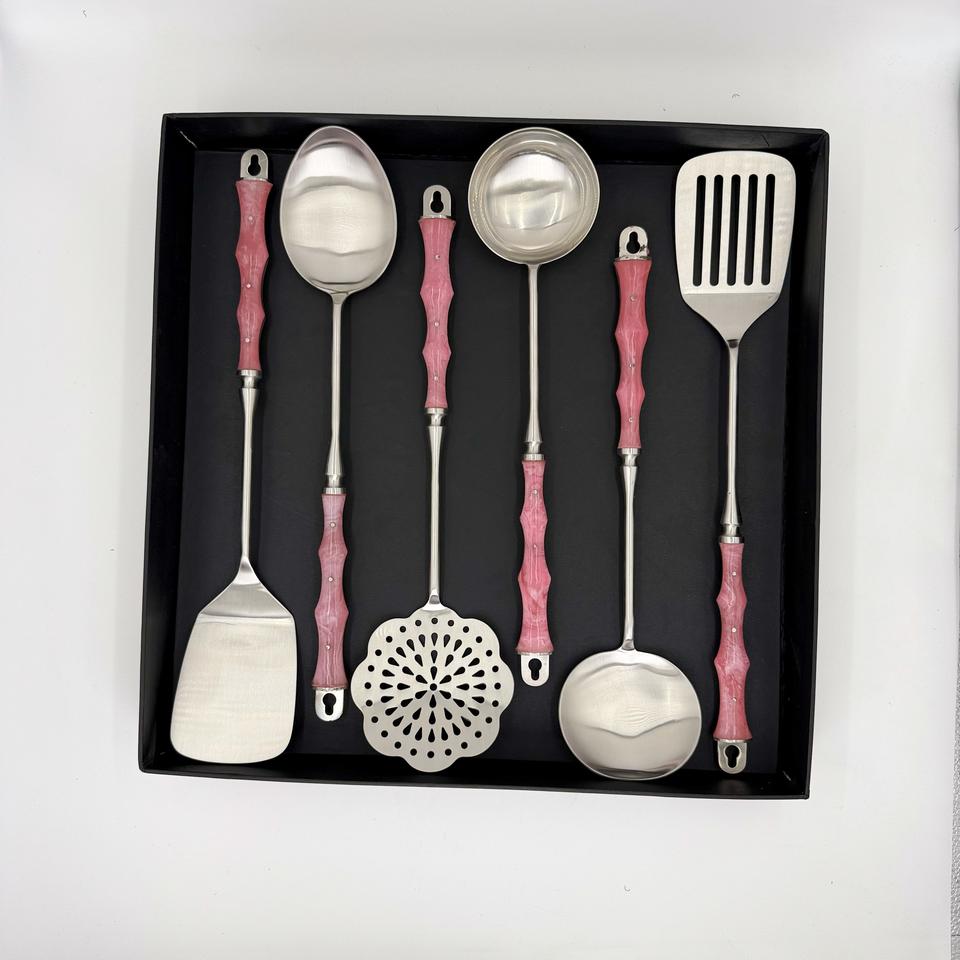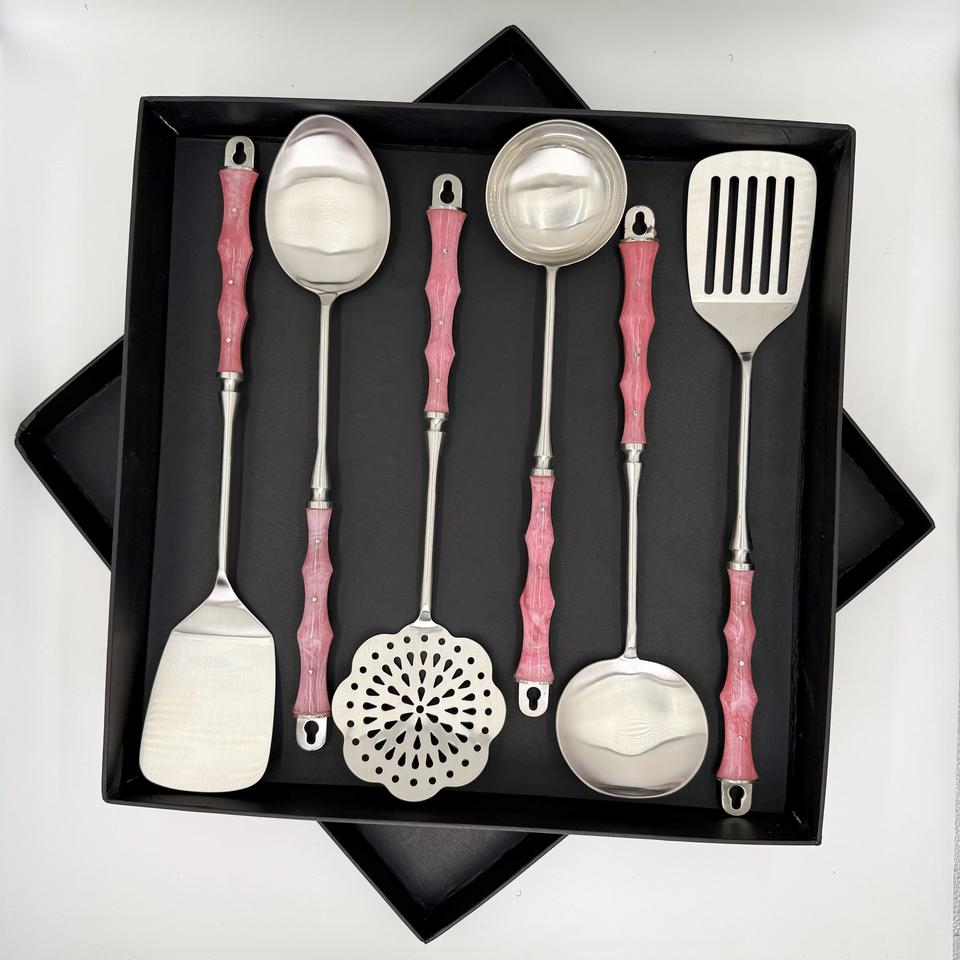 ชุดช้อนส้อมสลัดพร้อมด้ามจับเรซิ่น ชุดช้อนส้อมโลหะจากอินเดียโดย R B Overseas ราคาโรงงาน ขายดี