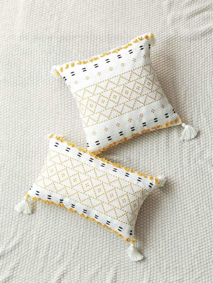 ปลอกหมอนผ้าฝ้ายมีพู่ประดับกลางแจ้งสไตล์โบฮีเมียนแบบงานแฟนซีงานสานมือตกแต่งหมอนโบโฮที่ไม่เหมือนใครโดย ithl