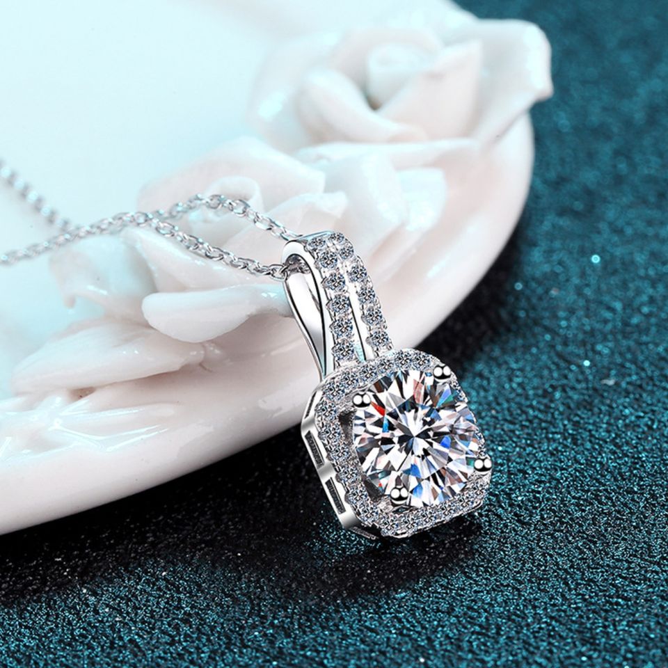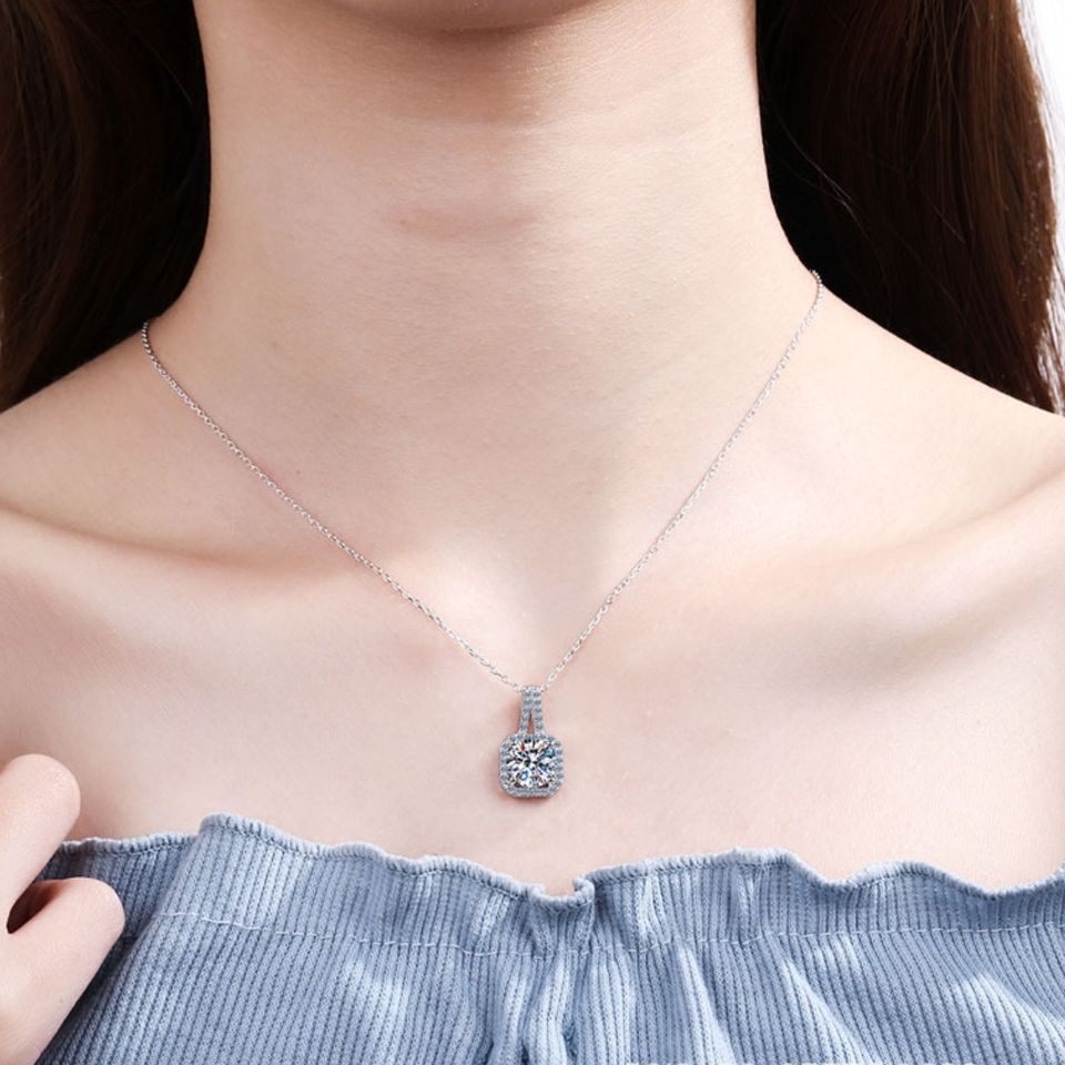 สร้อยคอจี้เพชรโมอิสซาไนต์ชุบโรเดียมเงินแท้ สไตล์ทันสมัย ขายดี สำหรับงานแต่งงานของผู้หญิง