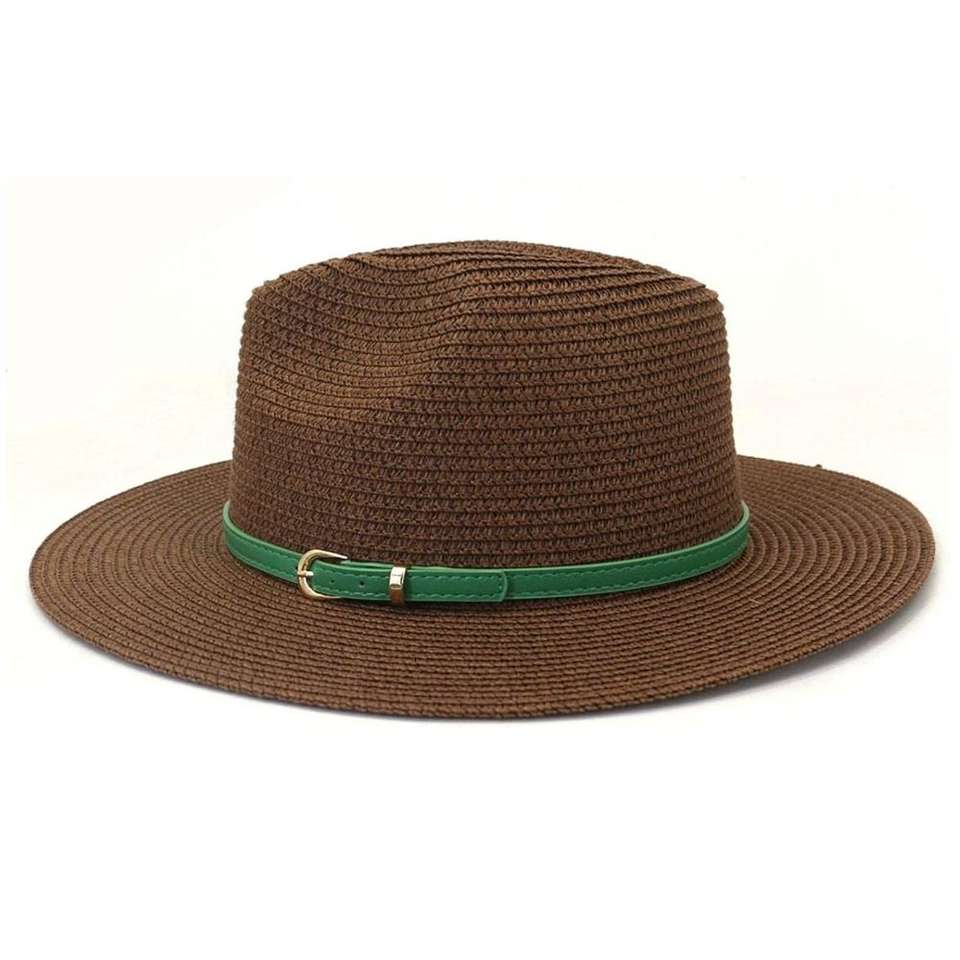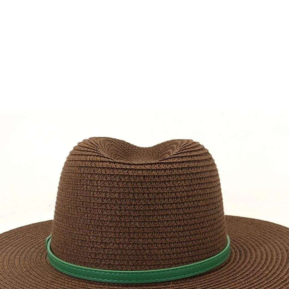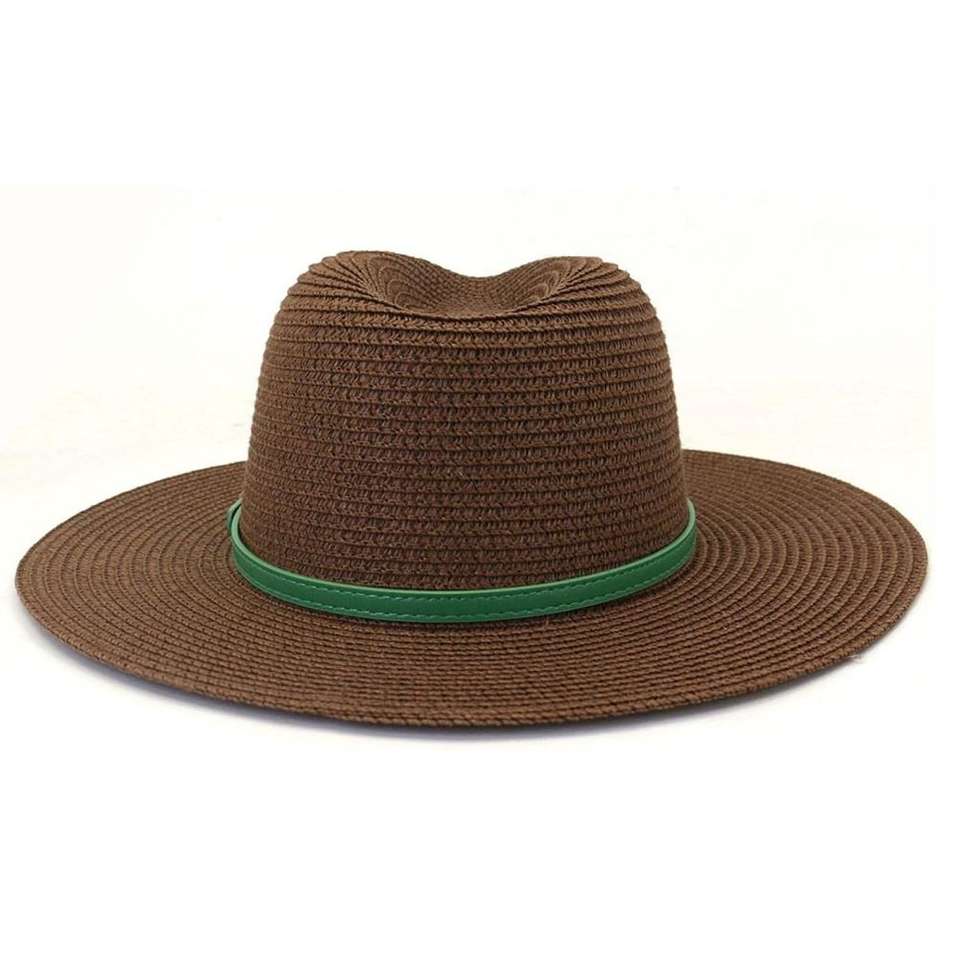 หมวกสานปานามาปีกกว้างคุณภาพพรีเมียมแฟชั่นลำลองขายดีสำหรับผู้หญิง พร้อมสายคาดสีเขียว รับผลิตแบบ OEM