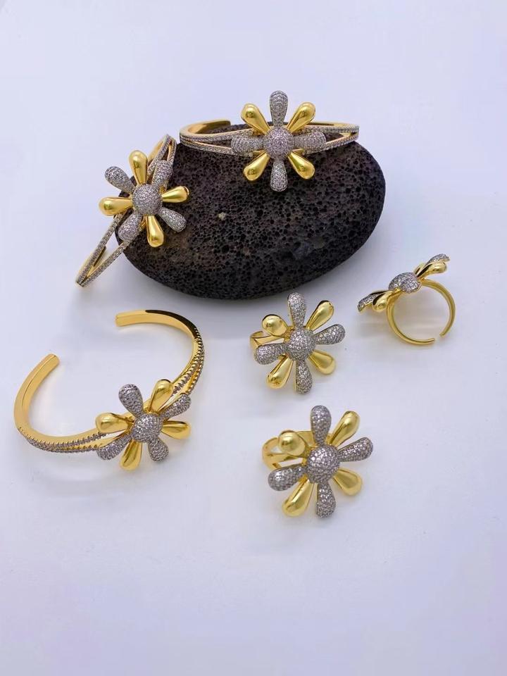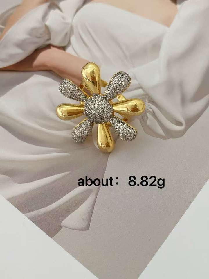 แฟชั่นขายดีเดซี่สองสีฝังเพทายขนาดเล็กแหวนอเนกประสงค์สุดหรูสำหรับงานแต่งงานปาร์ตี้ของขวัญ