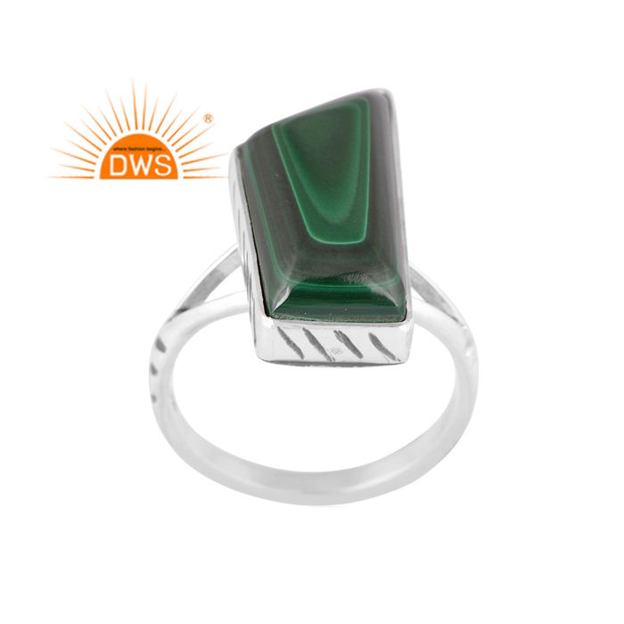 แหวนอัญมณีมาลาไคต์ธรรมชาติเงินแท้925ละเอียดคอลเลกชันที่น่าดึงดูดผู้ผลิตเครื่องประดับตามสั่ง