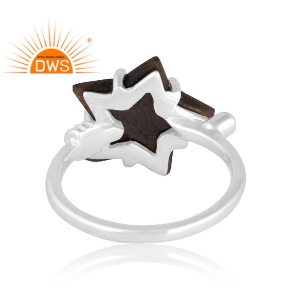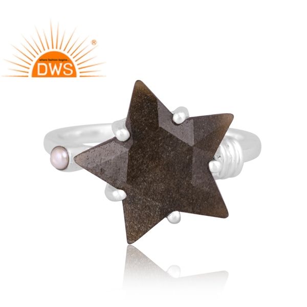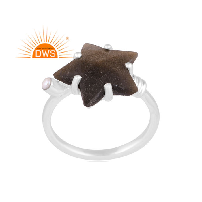 แหวนพลอยออบซิเดียนสีเงินสเตอร์ลิงและสีทองเงางามแหวนวางซ้อนกันได้ออกแบบโดยผู้ผลิตเครื่องประดับตามความต้องการ