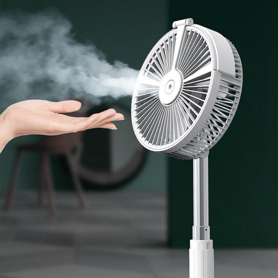 พัดลมยืดหดได้แบบพับได้พัดลมเขย่าหัวยูเอสบีแบบพกพาตั้งโต๊ะขนาดเล็กพาวเวอร์แบงค์สำหรับตั้งพื้นพัดลมสเปรย์เพิ่มความชื้น