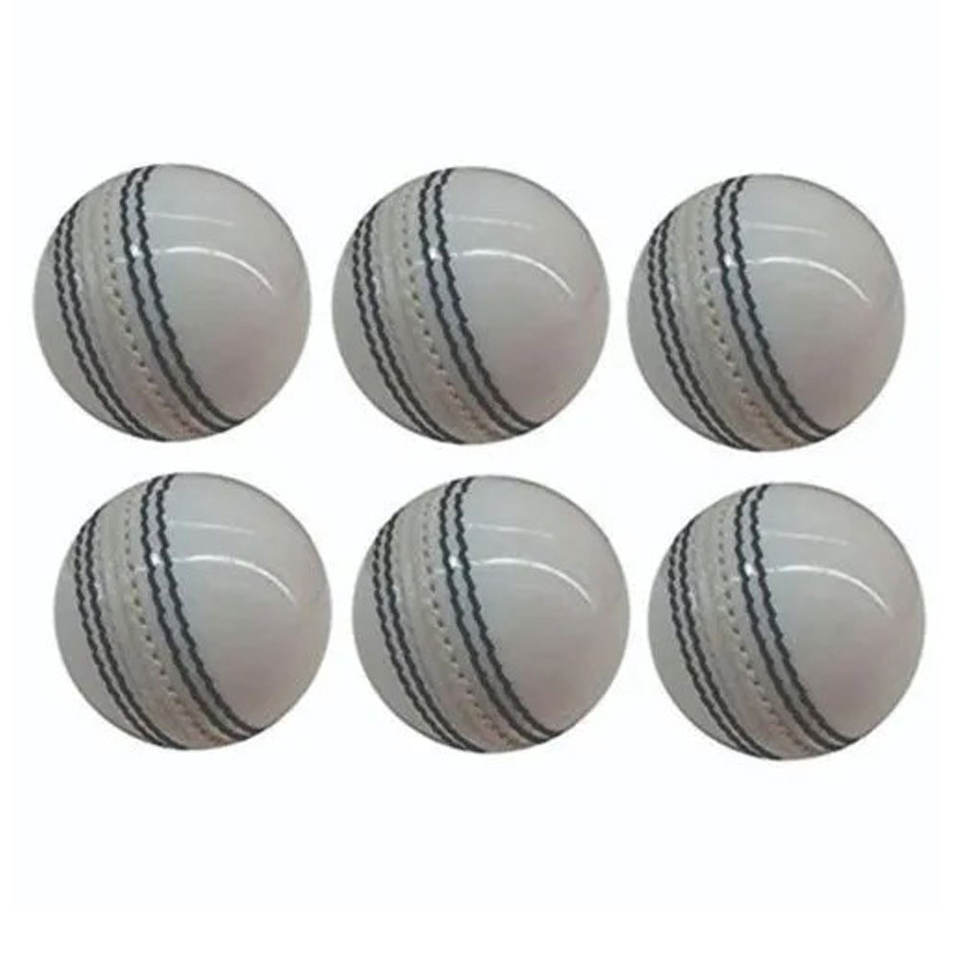 ลูกบอลคริกเก็ตหนังแท้สีขาวเงางามเต็มรูปแบบสำหรับฝึกซ้อมกีฬาเย็บด้วยมือ