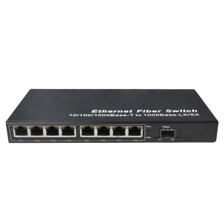 Hot Selling Gigabit 8 Port Fiber Optical Switch A/B 8 RJ45 1 SFP 10/100/1000m SC Single Fiber BIDI Optical Fiber Media Converter