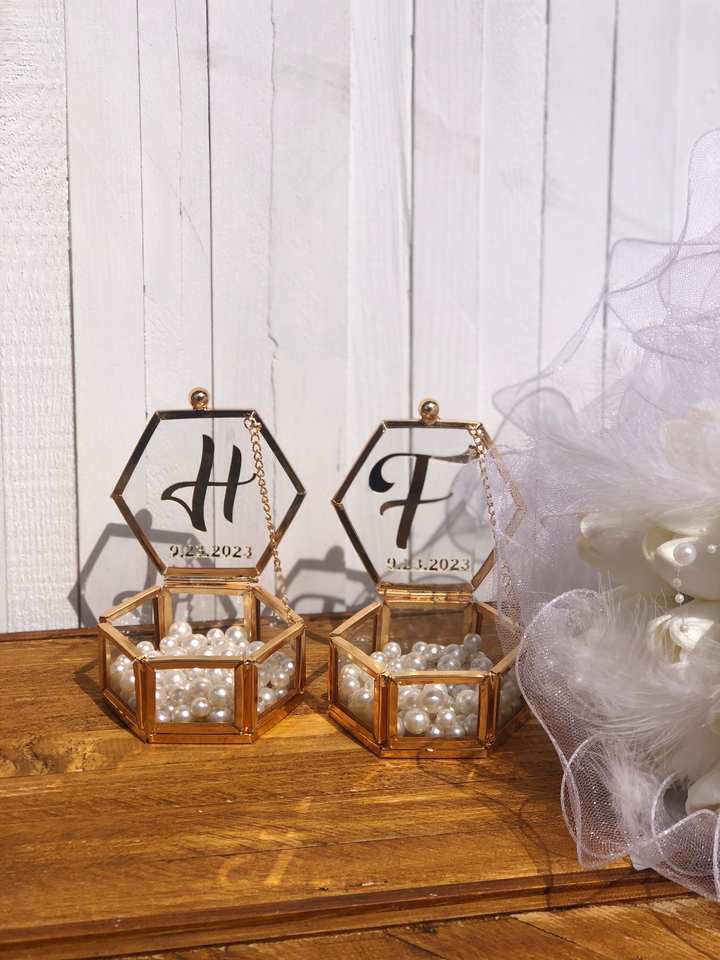 Hot Selling Glass Ring Boxes Jewellery Organizer Made With Glass And Metal Gold Polish Frame For Birthday Wedding Engagement