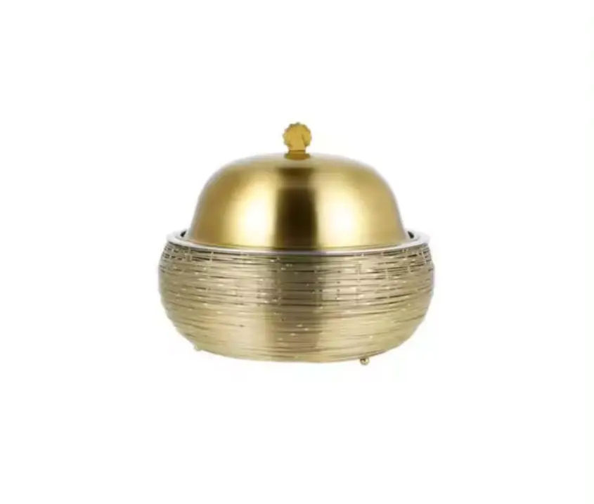 หม้อเหล็กเคลือบทองพร้อมดีไซน์ลวดและฝาปิดเหมาะสำหรับใช้อุ่นอาหารและการตั้งค่าบุฟเฟ่ต์