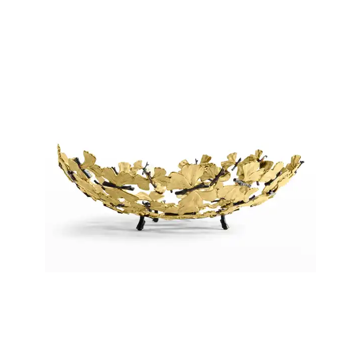 ชามเสิร์ฟผลไม้สีทองสำหรับตกแต่งงานทำมือดีไซน์ล่าสุด