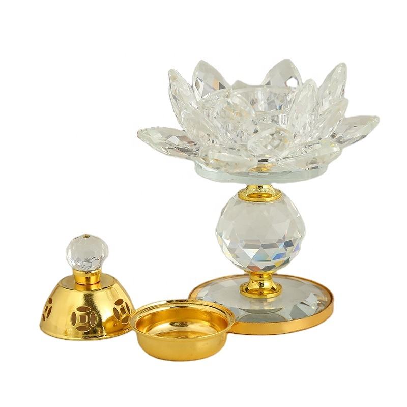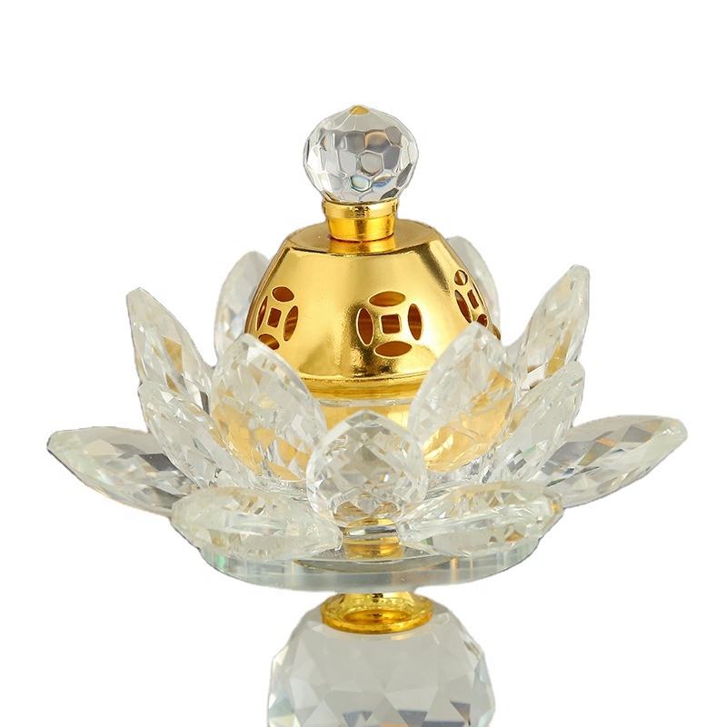เครื่องหอมธูปโลหะพร้อมดอกไม้คริสตัลสำหรับเครื่องพ่นไอน้ำมันหอมระเหยลายดอกไม้สีทองรูปดอกไม้สำหรับฤดูใบไม้ผลิ
