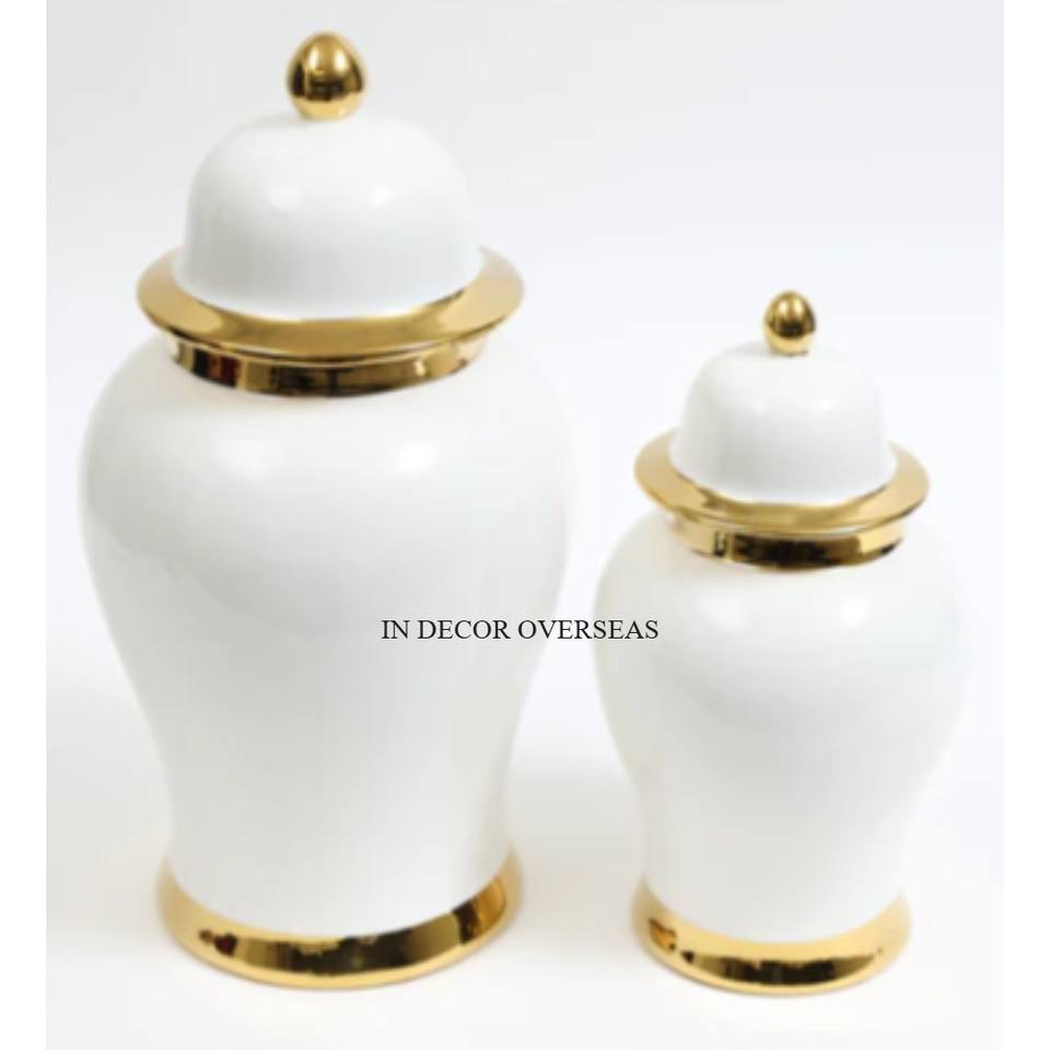 โถขิงเซรามิกเครื่องครัวสำหรับเก็บอาหารผงสีขาวลายดอกกุหลาบชุบทอง