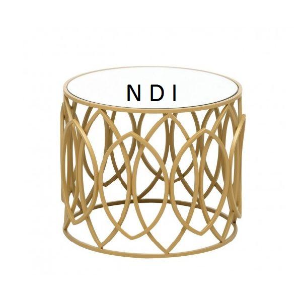 โต๊ะกาแฟโลหะตกแต่งด้านบนกระจกโค้งมนสีทองสำหรับโรงแรมร้านอาหารและศูนย์องค์กร