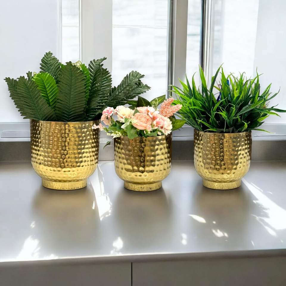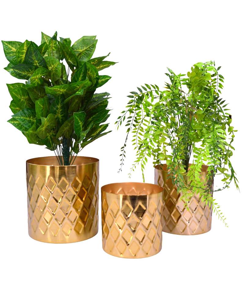กระถางต้นไม้สีทองขายดี ของตกแต่งบ้านและสวน มีแบบสั่งทำได้ ผลิตจากอะลูมิเนียม เหล็ก และเหล็กกล้า