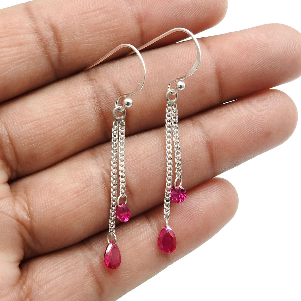 ต่างหูเซอร์โคเนียทับทิมเงินสเตอร์ลิง925หรูหราคลาสสิกห้อยเครื่องประดับแฮนด์เมดสำหรับผู้หญิงเด็กผู้หญิง