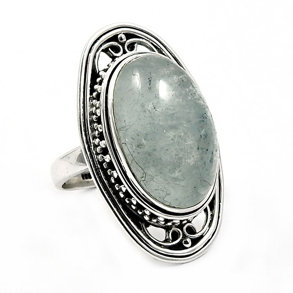 Hot Selling Good Quality Top Product 925 Sterling Silver Natural Aquamarine Gemstone Oval Shape Ring March Birthstone Jewelry