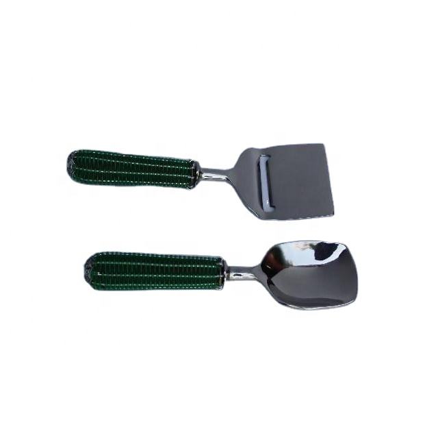 ชุดเสิร์ฟสลัดข้าวสีเขียวมีด้ามจับเหล็กขัดเงาวัสดุอื่นๆมีเครื่องครัว