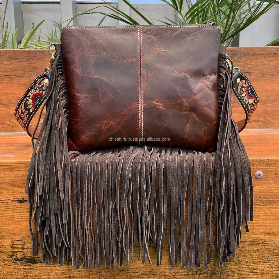 กระเป๋าสะพายพาดลำตัวหนังวัวแบบมือ