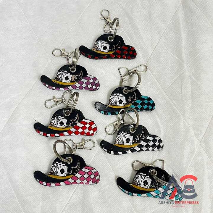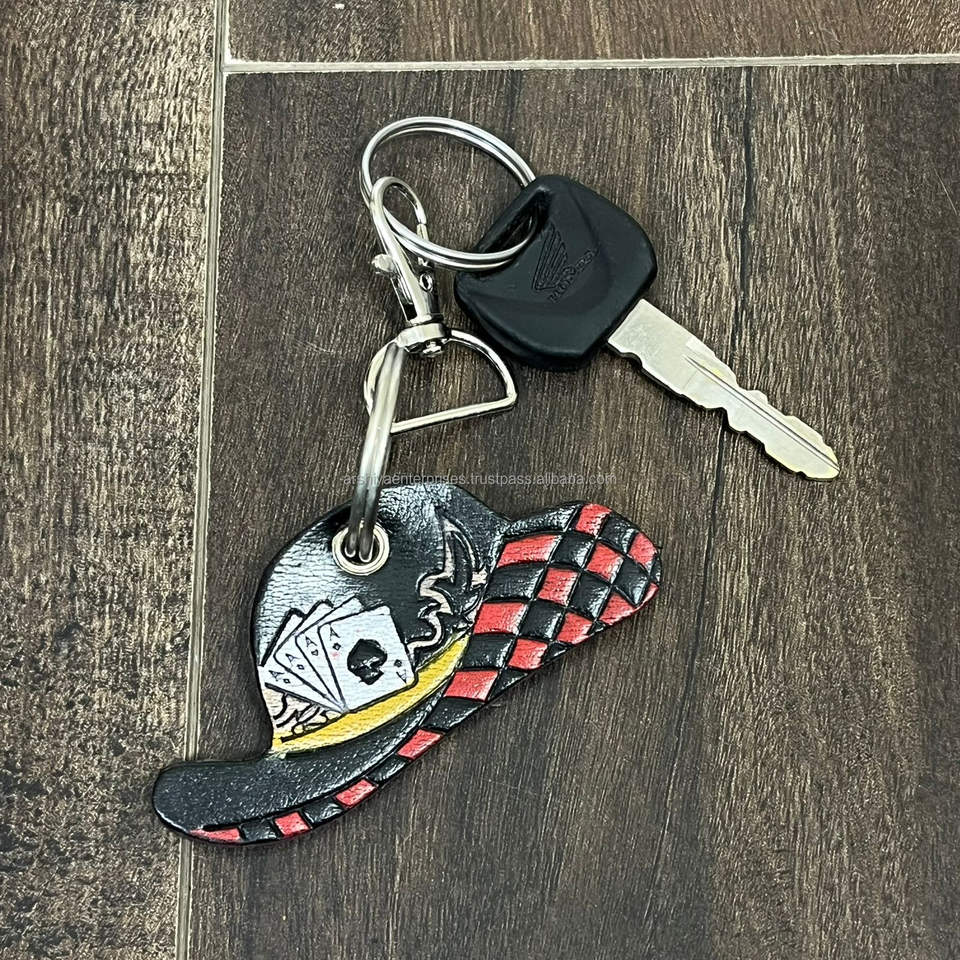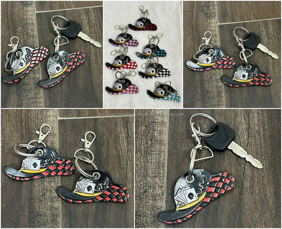 พวงกุญแจหมวกคาวบอยหนังวัวแท้ทำมือ ลายตารางสไตล์ตะวันตก ของขวัญยอดนิยมสำหรับผู้ชายและผู้หญิง