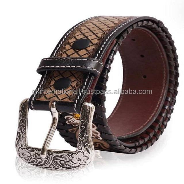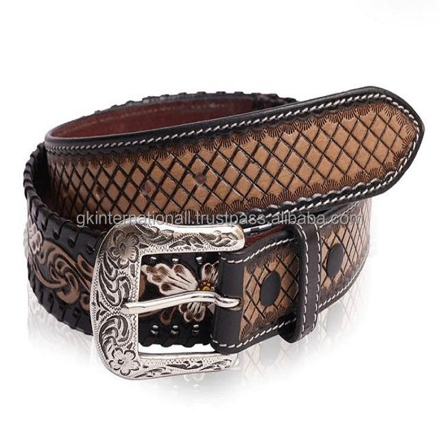 เข็มขัดหนังตะวันตกสองโทนทำด้วยมือสำหรับคาวบอยเครื่องมือช่างลายดอกไม้เข็มขัดตะวันตกสำหรับผู้ชาย