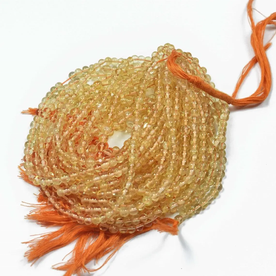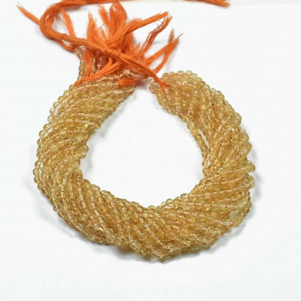 ลูกปัดหินสีเหลืองมะนาวธรรมชาติขนาด4มม. 5มม. 6มม. ทำด้วยมือรักษาอัญมณีสำหรับทำสร้อยคอ