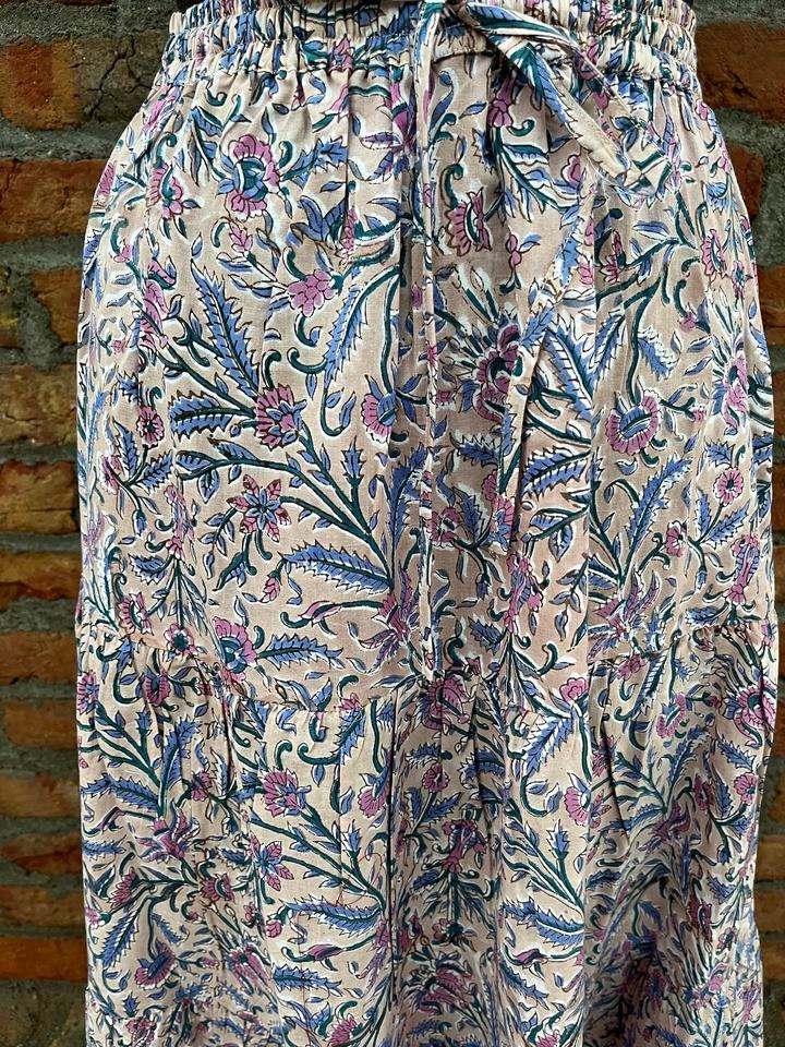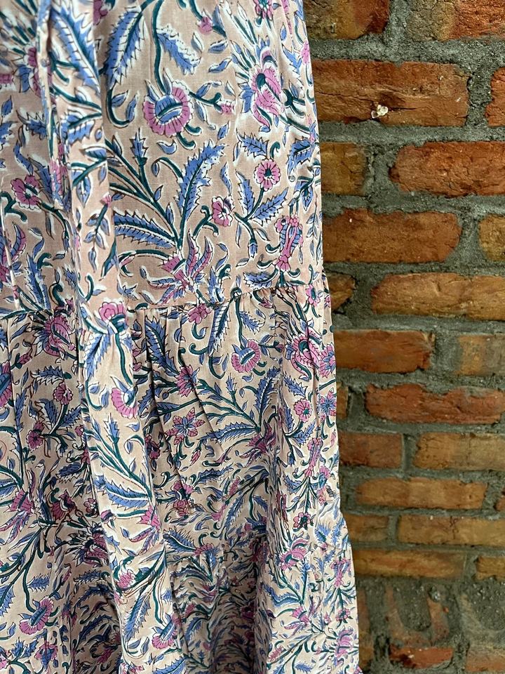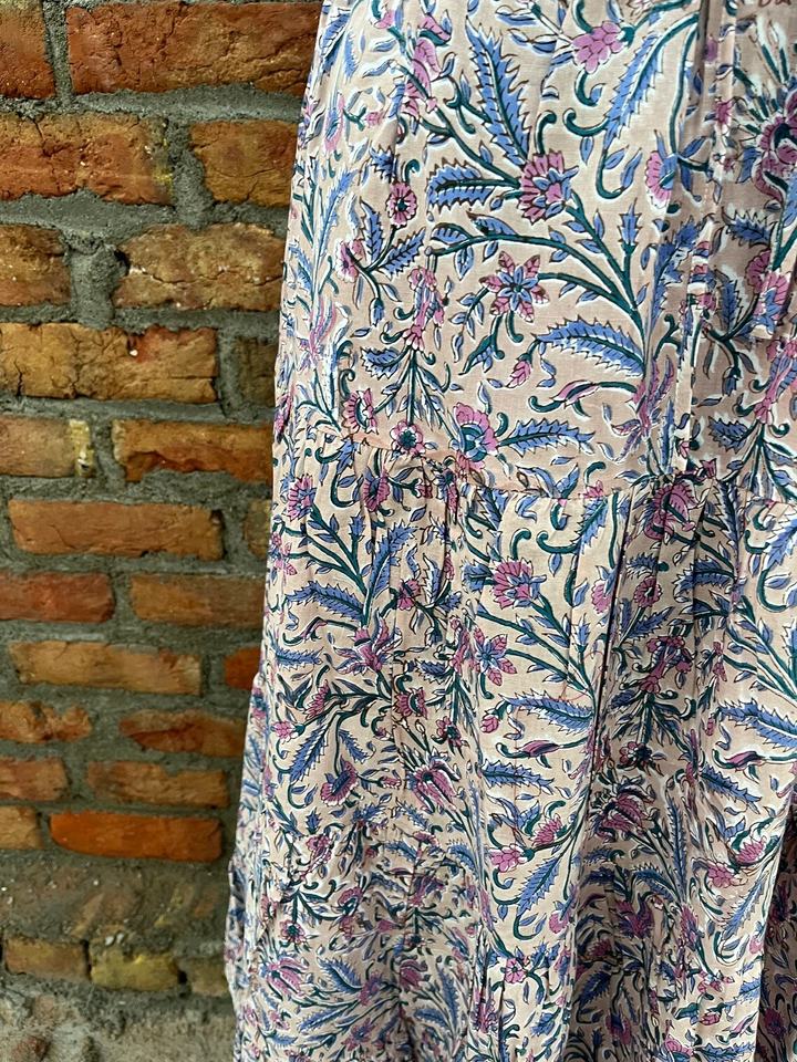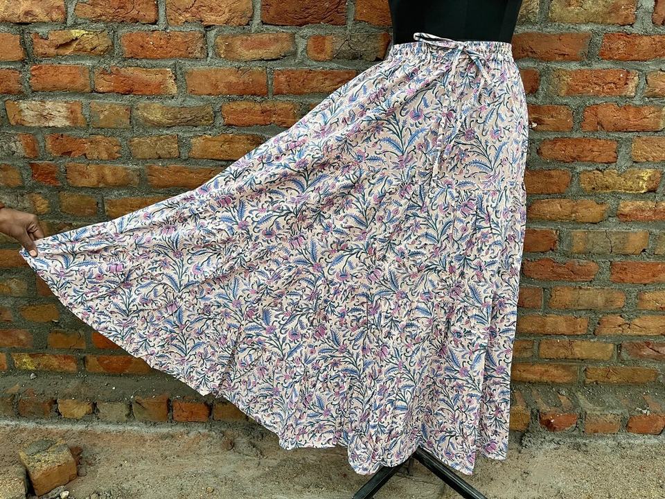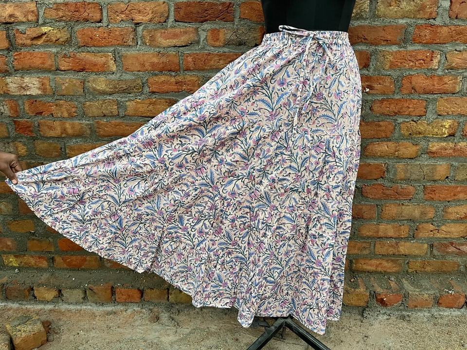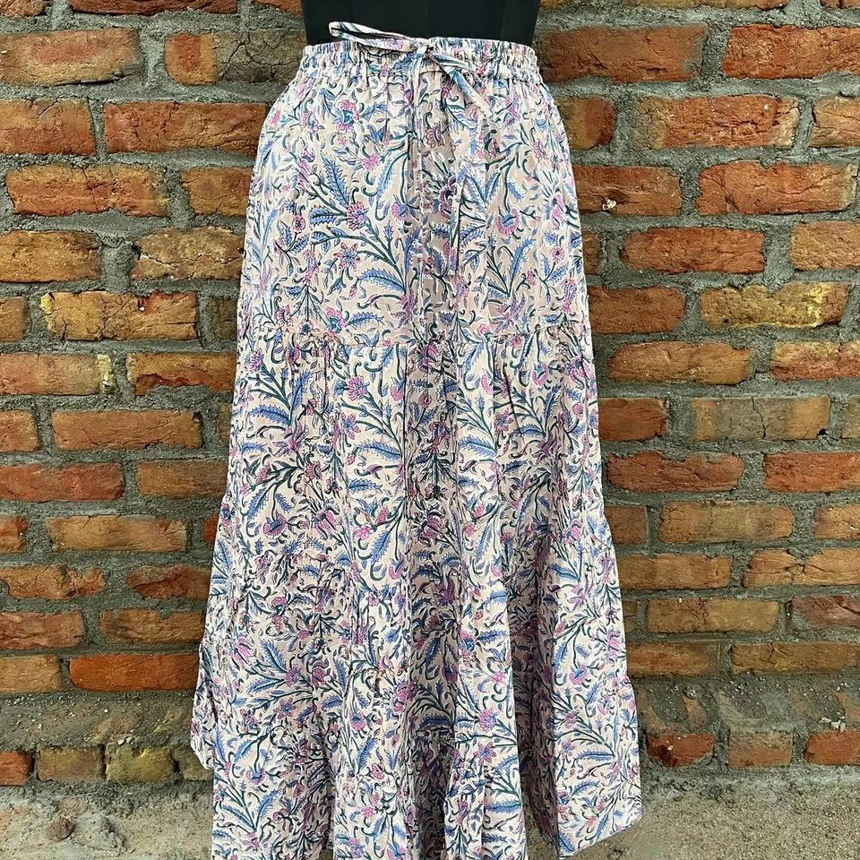 กระโปรงแม็กซี่โบโฮทำมือขายดีสำหรับผู้หญิง ลายพิมพ์บล็อก ผ้าฝ้ายทรงเดรสหลายชั้น เอวยางยืดใส่สบาย ระบายอากาศได้ดี กระโปรงยาว