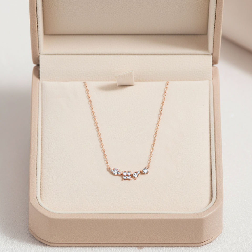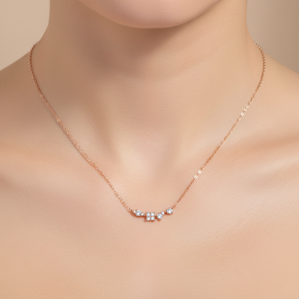 สร้อยคอจี้เพชรแท้ทรงเรขาคณิต ดีไซน์พิเศษ งานแฮนด์เมด สวยหรู ทองคำแท้ 18K สีโรสโกลด์ สไตล์มินิมอล ขายดี