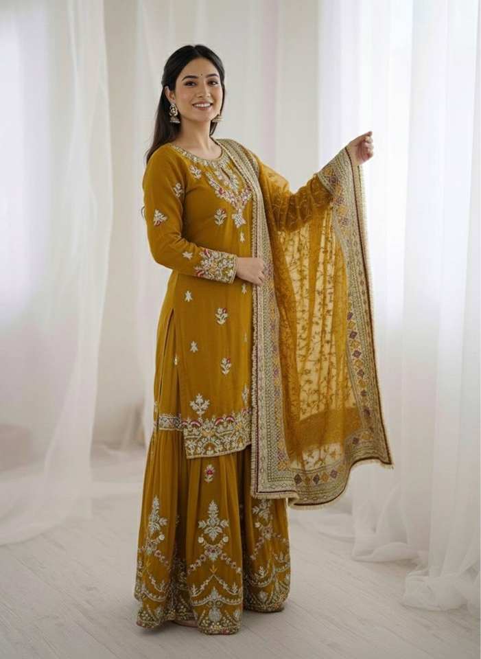 Hot Selling Handmade Heavy Embroidery Kurta with Georgette sharara Indian & Pakistani Wedding Party Wear Dress Ready To Wear