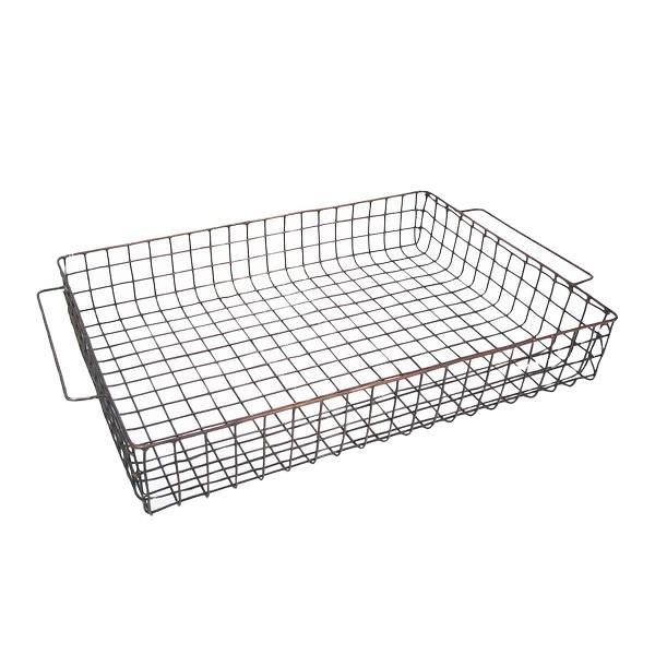 ถาดเสิร์ฟผลไม้ลวดตาข่ายเหล็กทำมือพร้อมที่จับด้านข้างถาดเก็บลวดโลหะขนาดเล็กสำหรับโต๊ะทำงาน