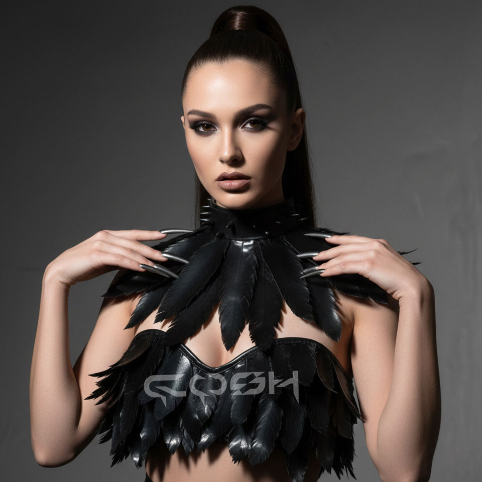 สร้อยคอหนังทำมือประดับขนนกและหนาม สไตล์โกธิค สำหรับงานเทศกาล ขายดี พร้อมบริการจัดส่ง