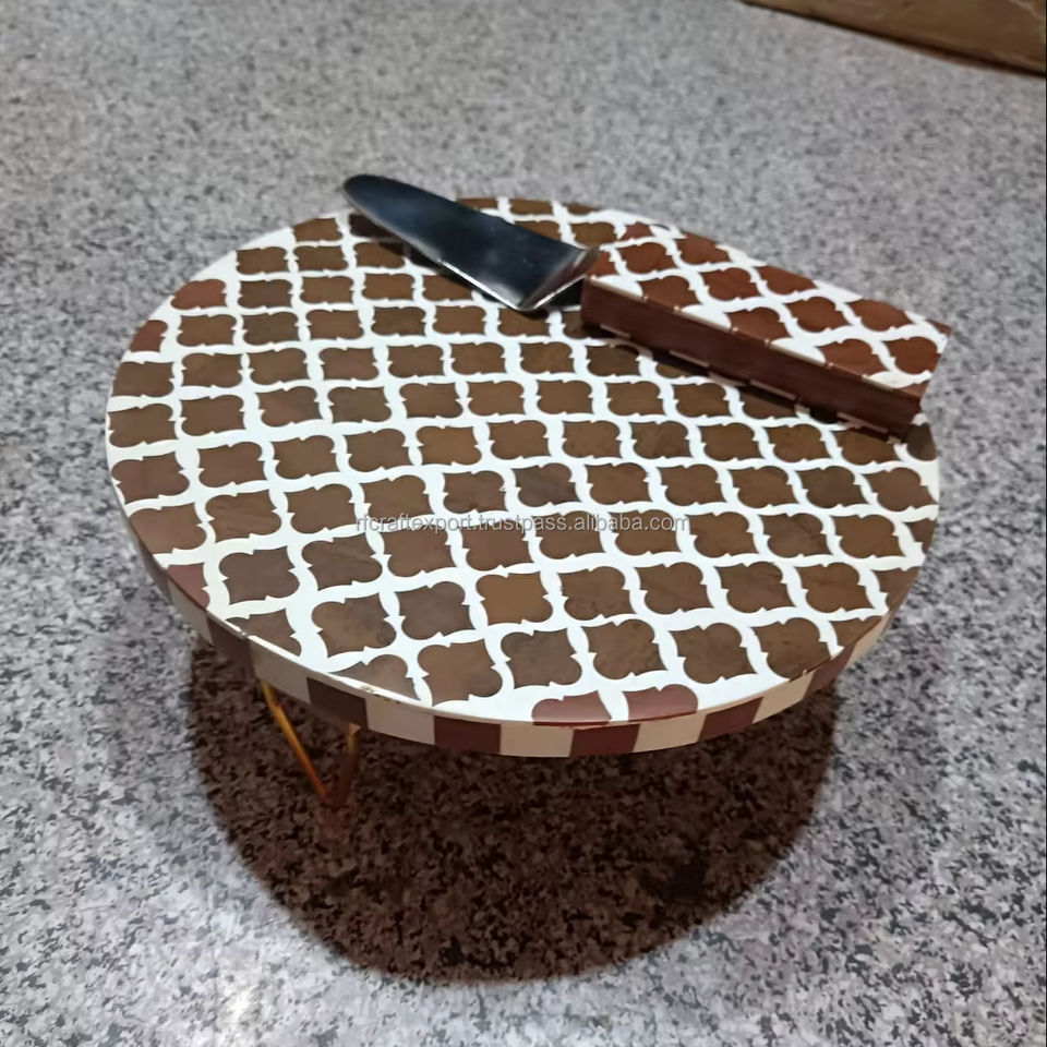 ที่วางเค้กเรซินลายโมร็อกโกทำจากไม้สินค้าแฮนด์เมดสำหรับตกแต่งเค้กขนมหวาน