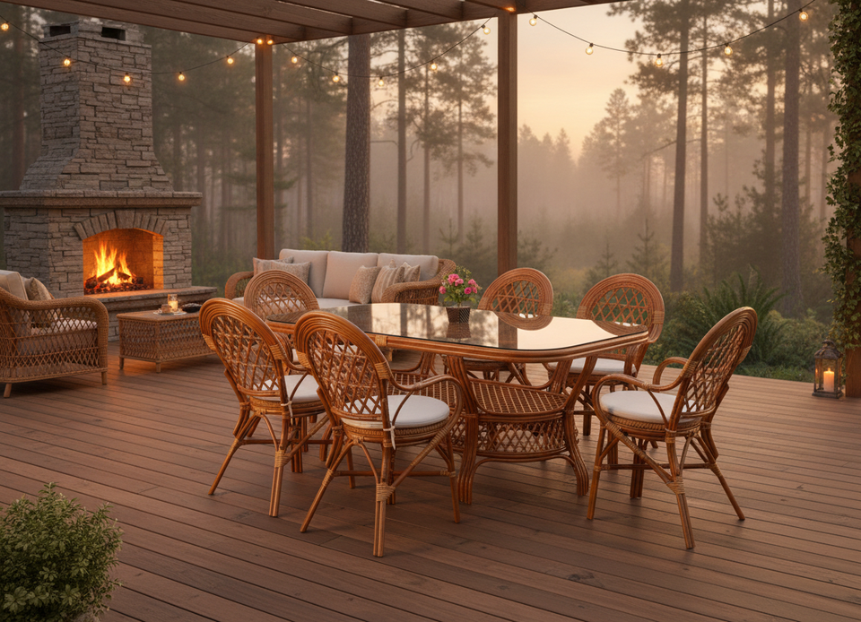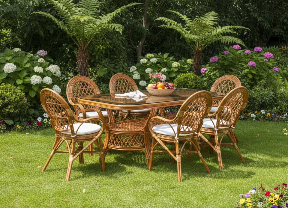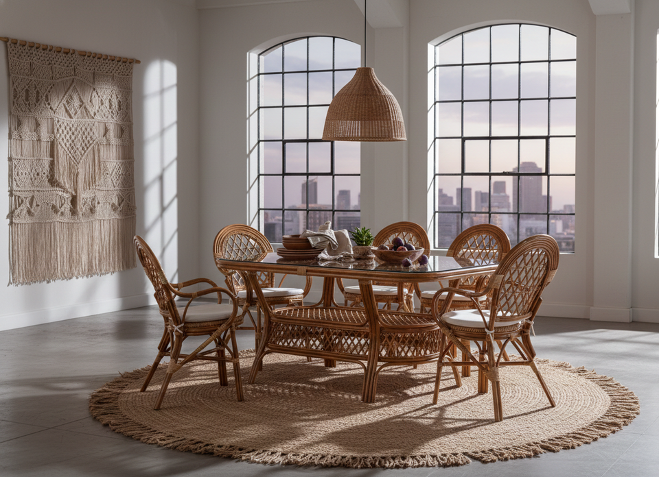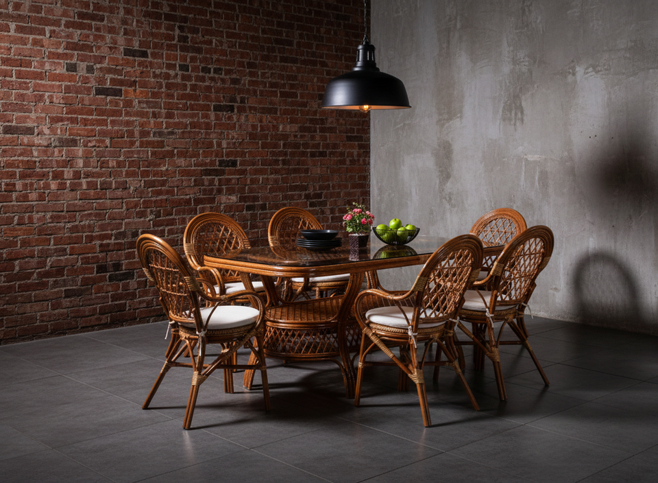 ชุดโต๊ะอาหารหวายทำมือขายดี ดีไซน์ทันสมัย โต๊ะอาหารยาว เฟอร์นิเจอร์ห้องอาหาร ชุดตกแต่งภายในวิลล่า CV.Craftindo